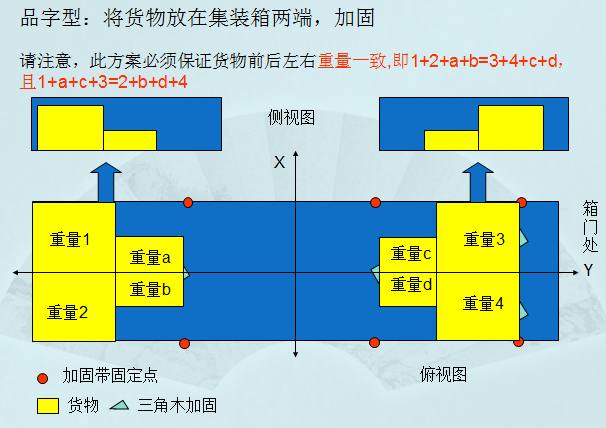 Ø当集装箱前后不能超500KGS,左右不能超300KGS;